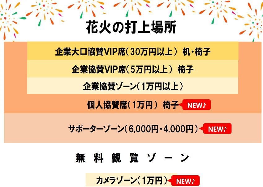 ■ 観覧(ゾーン)にて花火をご覧いただける協賛です。